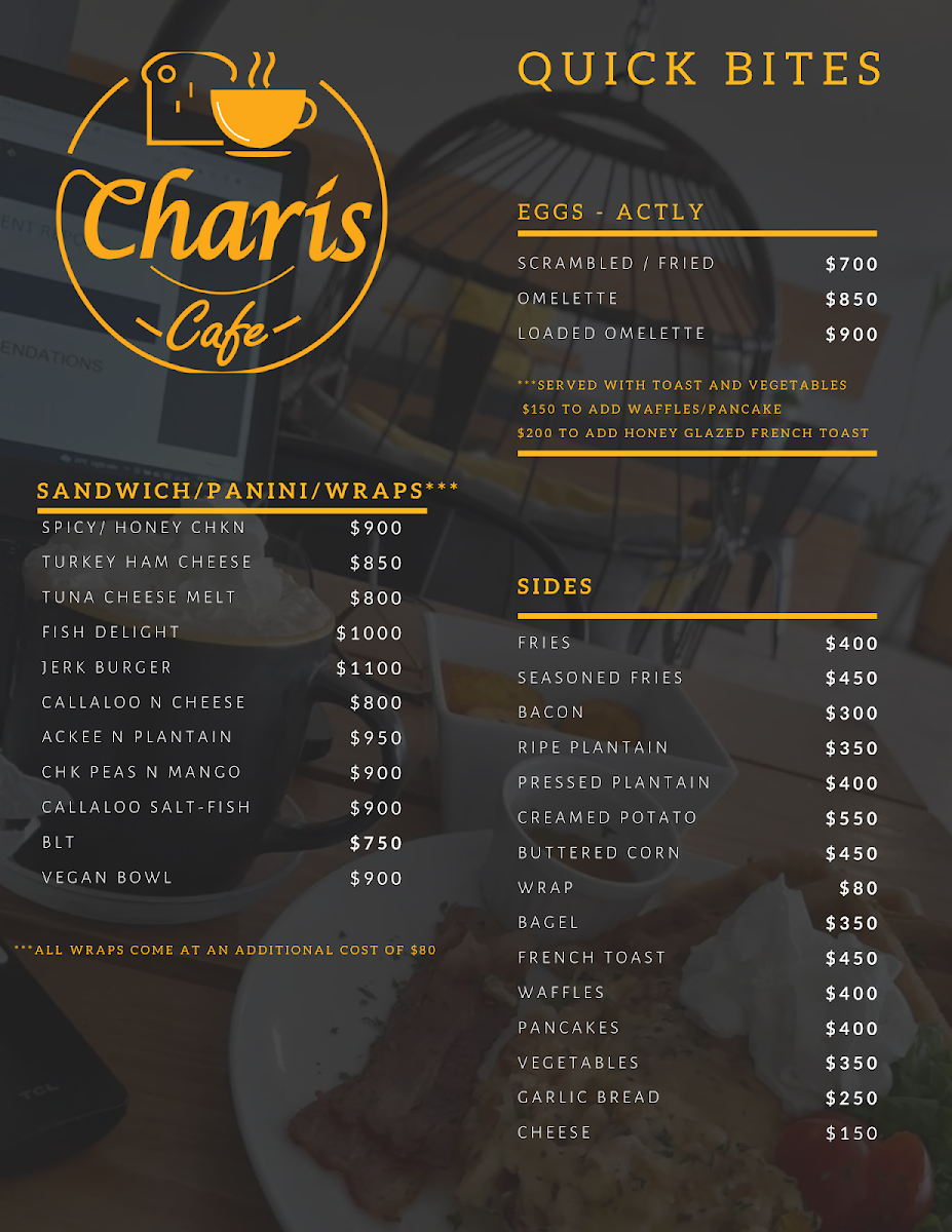 Welcome to Charis Cafe Ja, a serene spot nestled in Kingston, Jamaica. This cafe is not just a culinary destination but also a haven for those seeking tranquility and fellowship. Managed by passionate owners, it exudes a friendly atmosphere, making it perfect for unwinding or engaging in meaningful conversations.